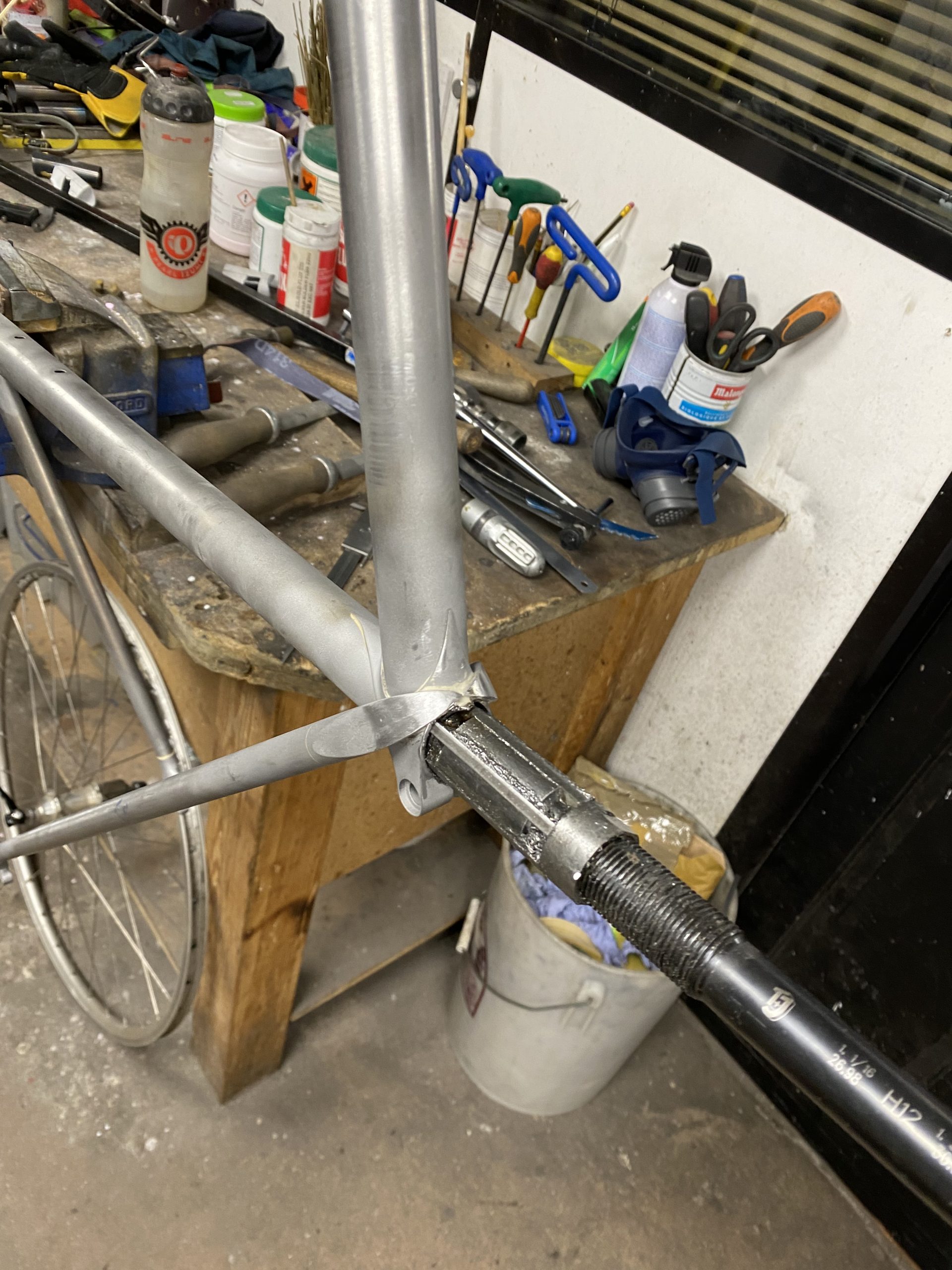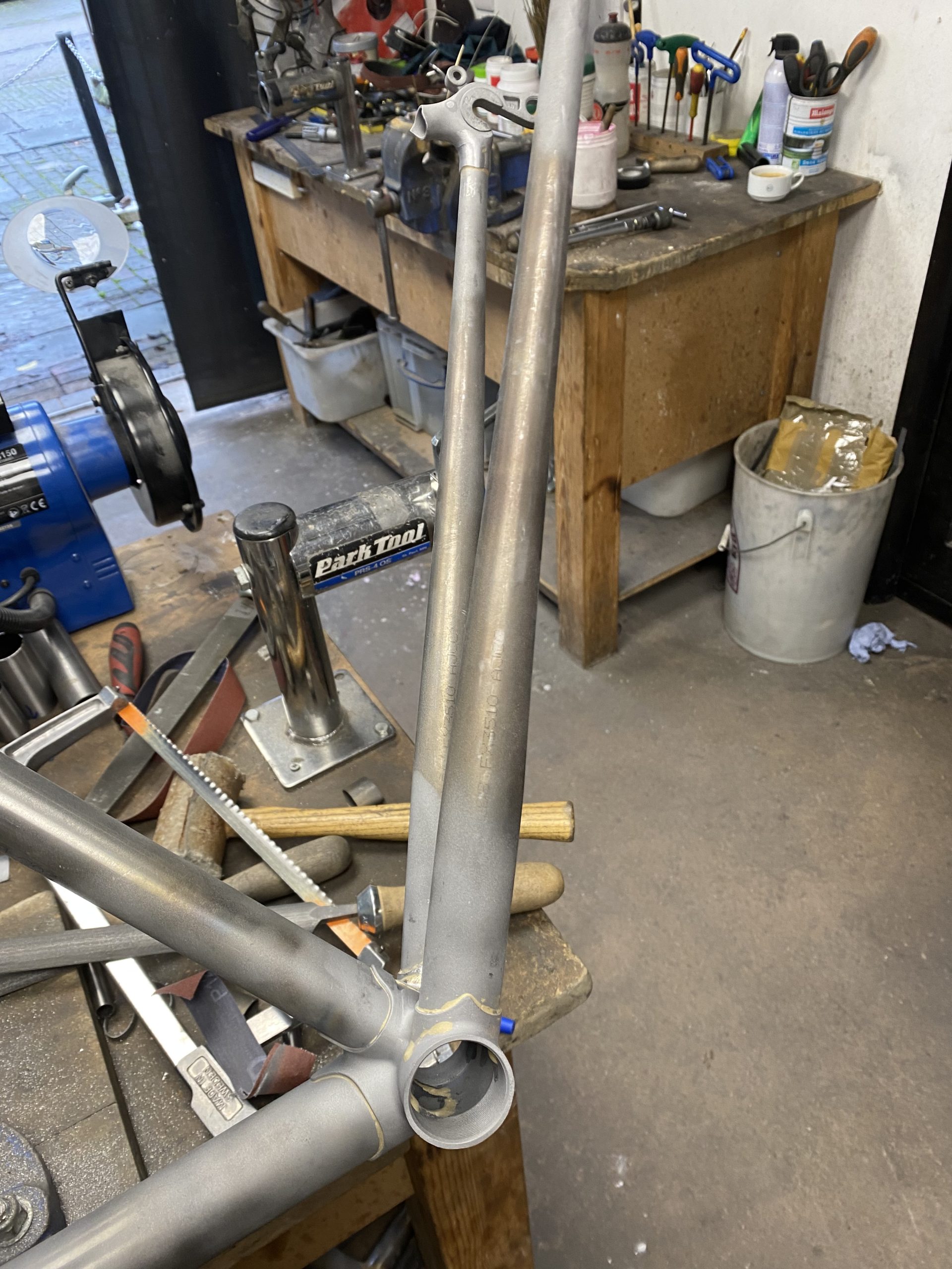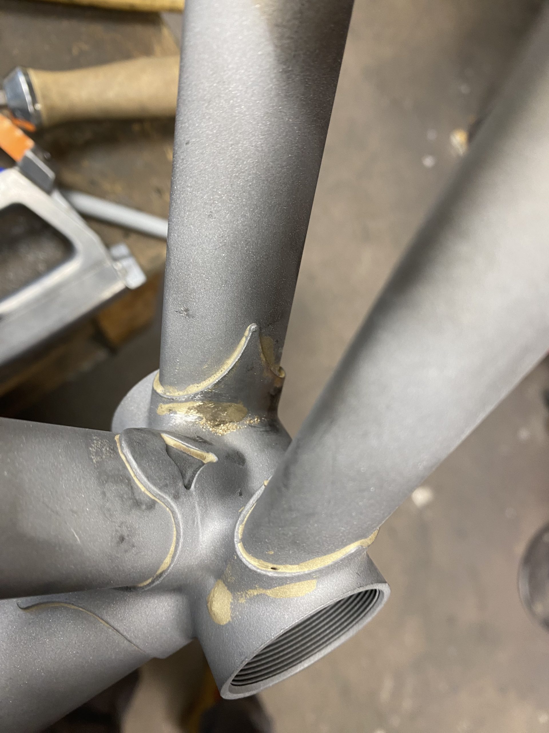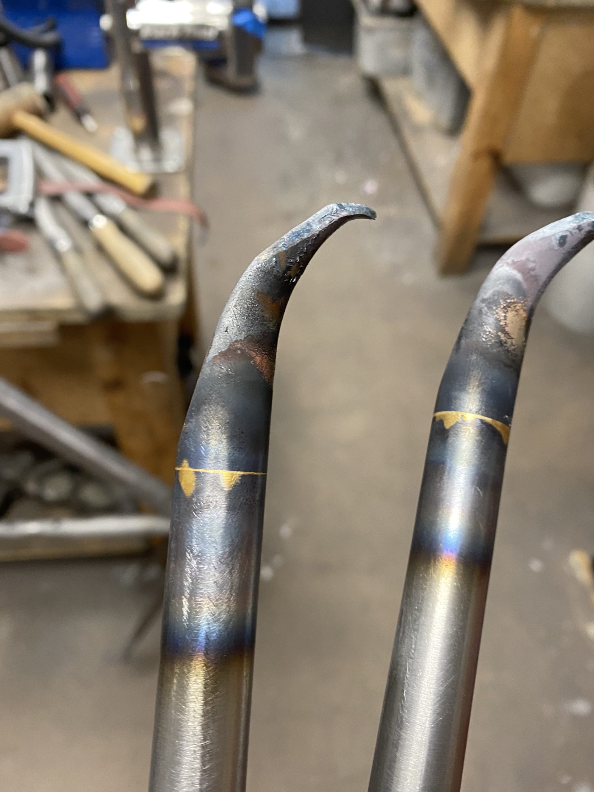 chain stay brazes chain stay brazes top eyes – one cleaned top eyes shaped top eyes bent over cleaned top eyes wrapped over top tube silver braze