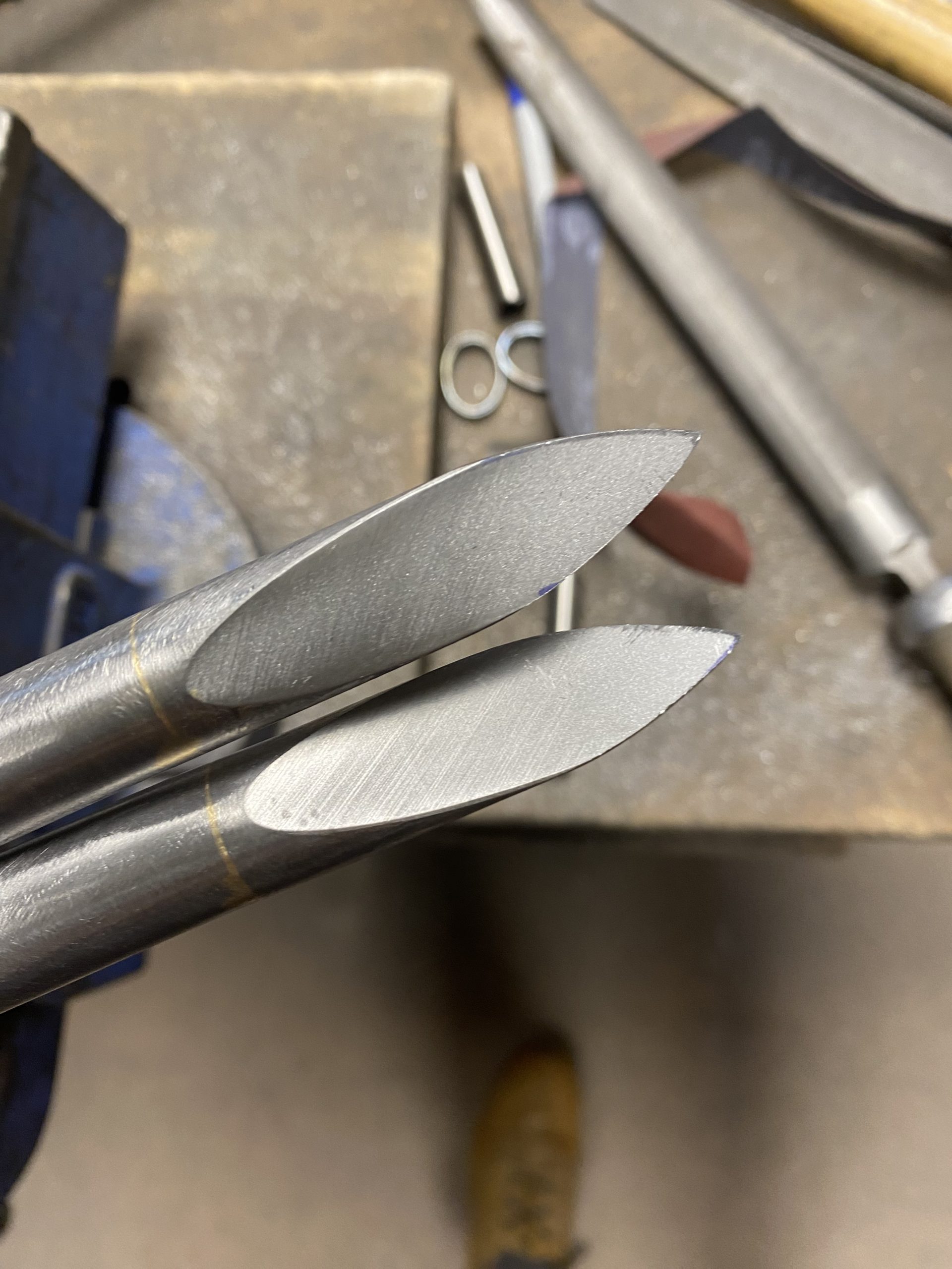 The seat stays were then cut to length and the top eyes brazed on. I decided to go for wrap over top eyes so I filed the eyes and we did a bit of blacksmithing to bend them over to fit around the top tube. Lots more fettling and filing to get a good fit. The top eyes were brazed with silver to avoid too much heat in the previous brazes on the seat cluster.