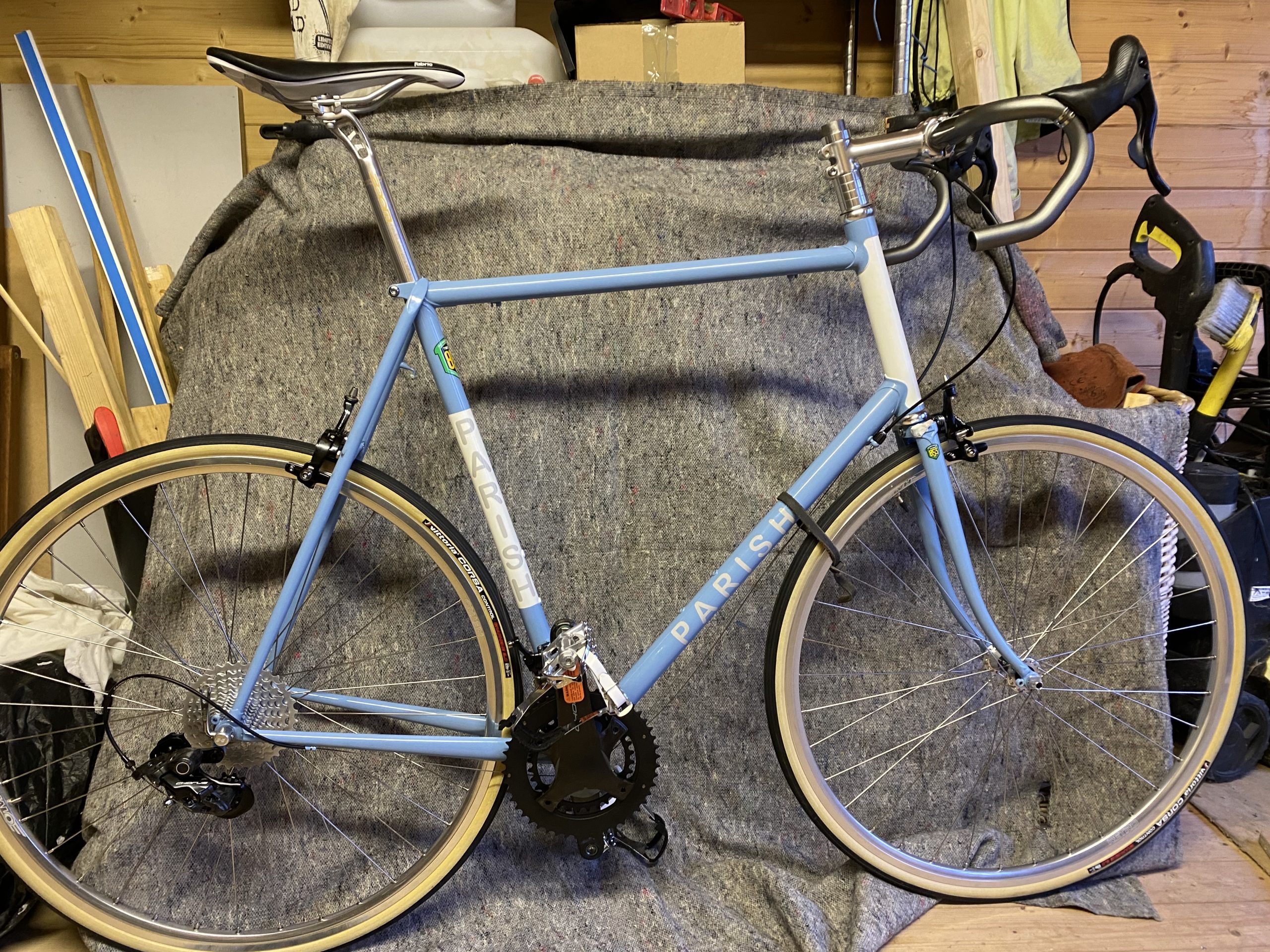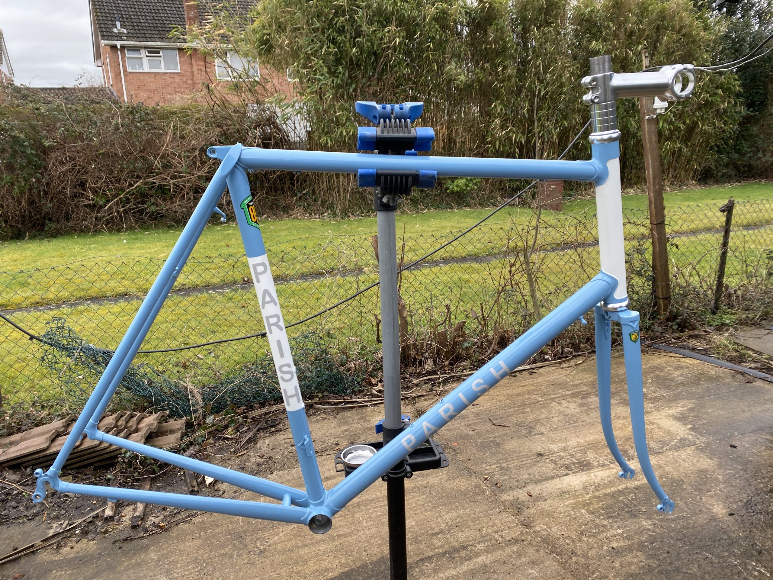 I made a start on the final build. The headset cups went in nicely but the crown race was very tight so I ended up cutting it. I hope that’ll be OK, it’s what the modern headsets seem to do. I can always replace later if it proves to be a problem. I tried heat but it wouldn’t go.